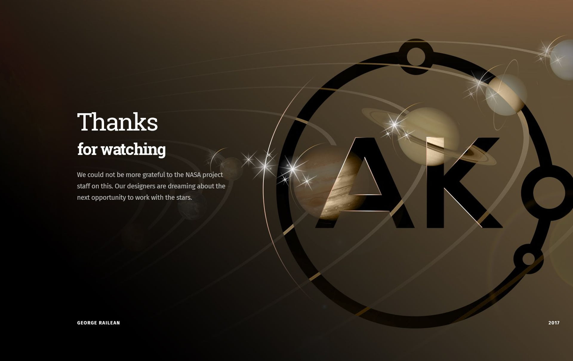 This project brought out the kid in all of us. Our sense of wonderment as the project progressed only grew more intense as we dug deeper into the rich design elements that make this site such a joy to look at. Although the data and technical work that was put into this project took years of intense work to create, we wanted it to feel effortless to navigate, as if floating through space.